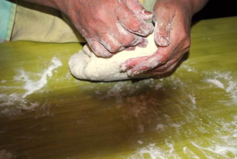 Once you’ve got all your wet and dry ingredients mixed up good, knead the dough for 5 to 6 minutes.
