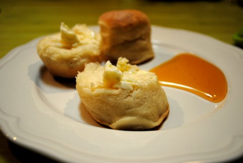 Yesterday we had ours slathered with butter and Roger’s golden syrup (which I could put on just about anything!). With a side of thick-cut, crispy-soft, fried bacon and creamy scrambled eggs with bits of carmelized Vidalia onion and sauteed fresh jalapeno inside. I found out that if you slide your bacon through a puddle of golden syrup on your plate and then pop it on top of a piece of biscuit you’ve damn near achieved some kind of comfort food nirvana.