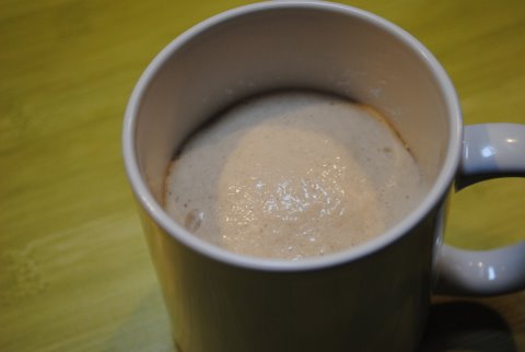 Here we go…………………..Soften the yeast in a bit of warm sugared water for 5 minutes or so til it gets all poofy and happy.