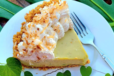 That’s pretty much how it went last night here in Kona, with wonderful old friends gathered on our lanai.  I made Pierogi Lasagna with all the trimmings for dinner.  And then brought out slices of Avocado Cream Pie.  Let’s just say, the pieces of pie disappeared quickly and dessert plates got licked!  Too fun!