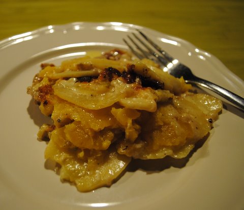 So I did, I took that fine combination of potato and butternut from Hungry Cravings and schmucked it together with parts of Mar's to-die-for scalloped potatoes and ended up, well, ended up here. Now, are you ready?