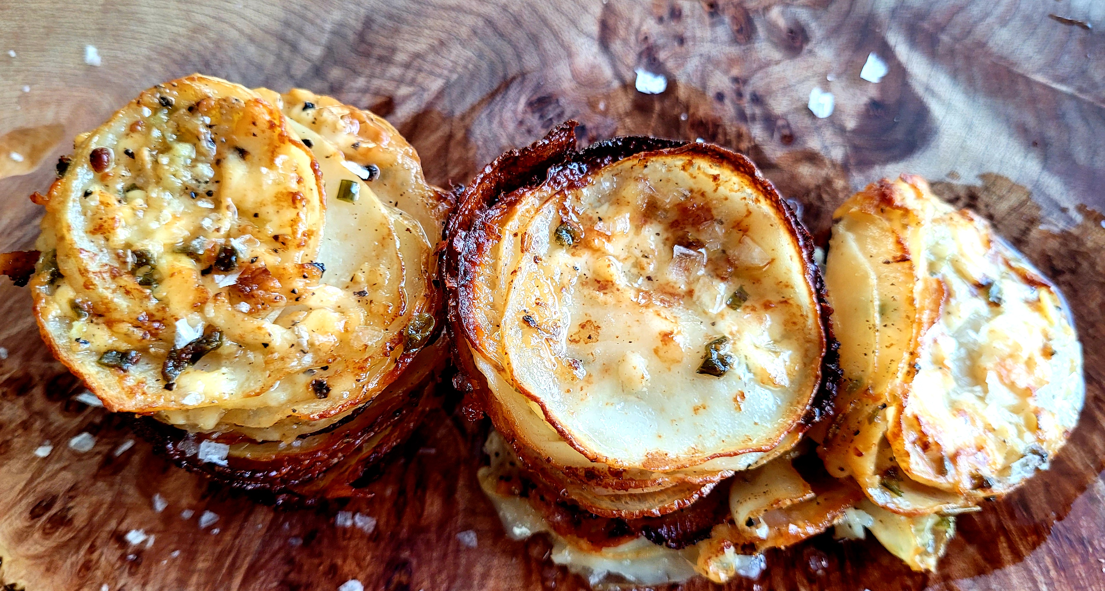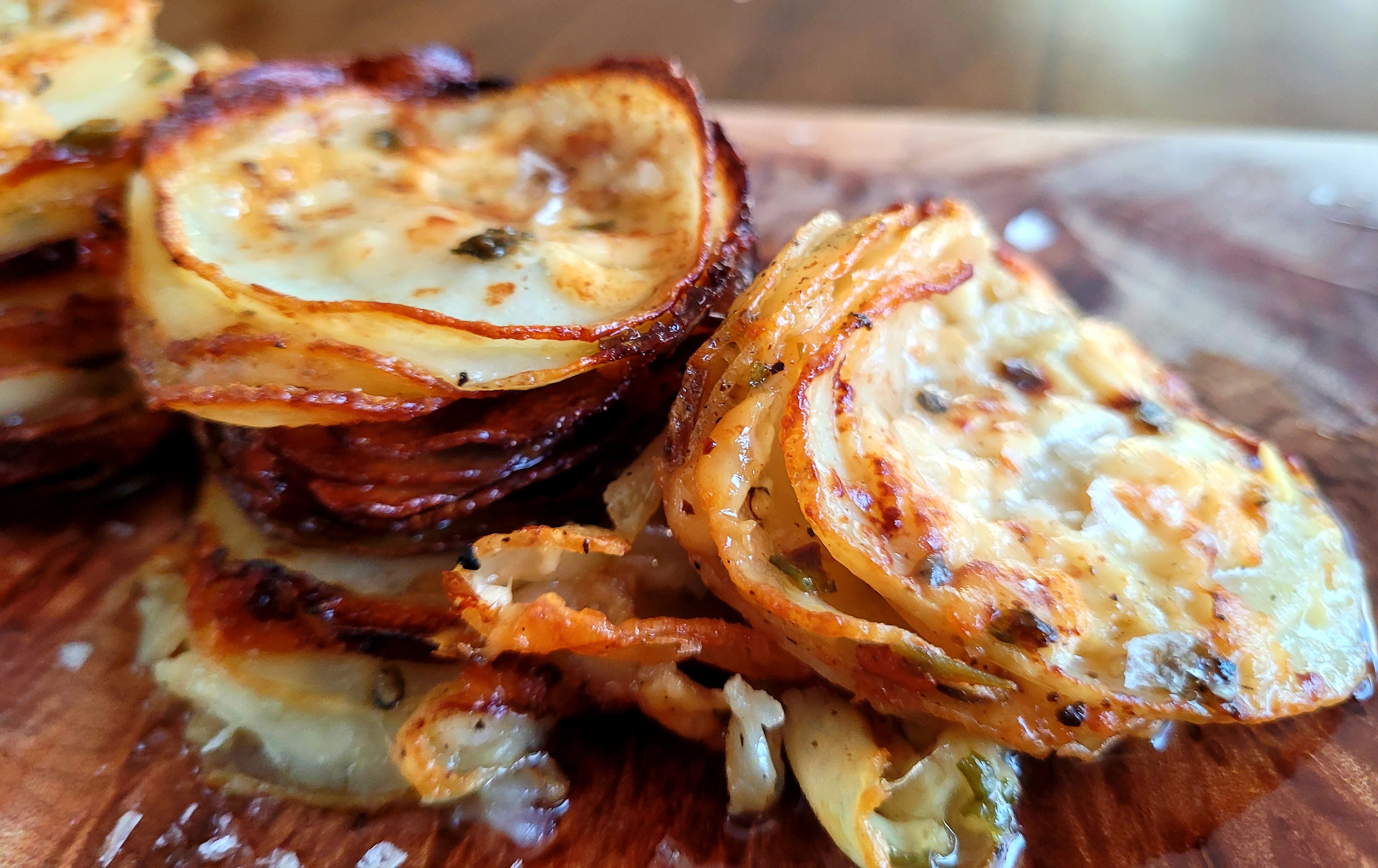 CHEESY GARLIC BUTTER POTATO STACKS ~ 6 Servings (maybe)
