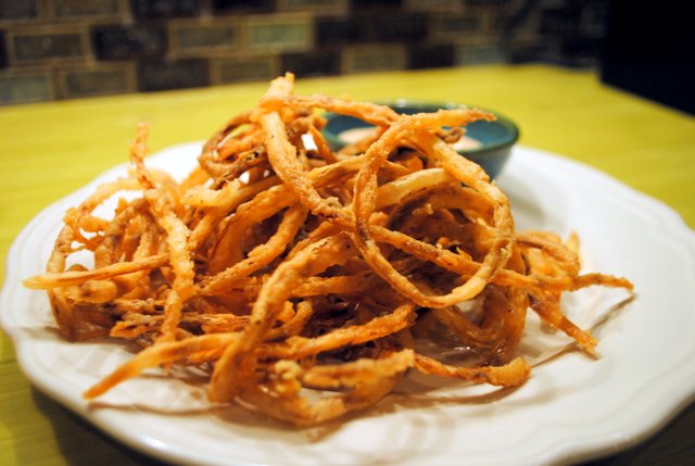 Skinny-sliced sweet onion, fried to crispy, crunchy, golden, nibbling perfection.