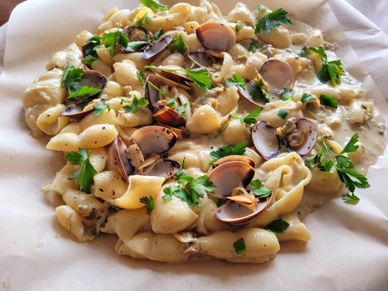 But, of course like a lot of pasta sauces, It's Our Creamy Clam Sauce is good on many, many pasta shapes, and it comes together quick and easy.
