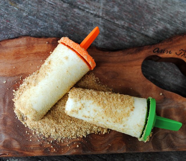 Dip in lukewarm water for 10 seconds or so to unmold each popsicle and press each side into graham crumbs, coating completely. Devour slowly, lick by lick, nibble by nibble.