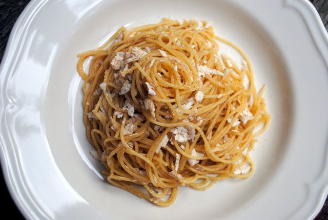 And no matter what, please pass the pepper mill to one and all partaking of these buttery, cheesy twirls of noodles, 'cuz freshly ground black pepper and Spaghettini with Browned Butter & Mizithra Cheese are a bit of a magical merger.