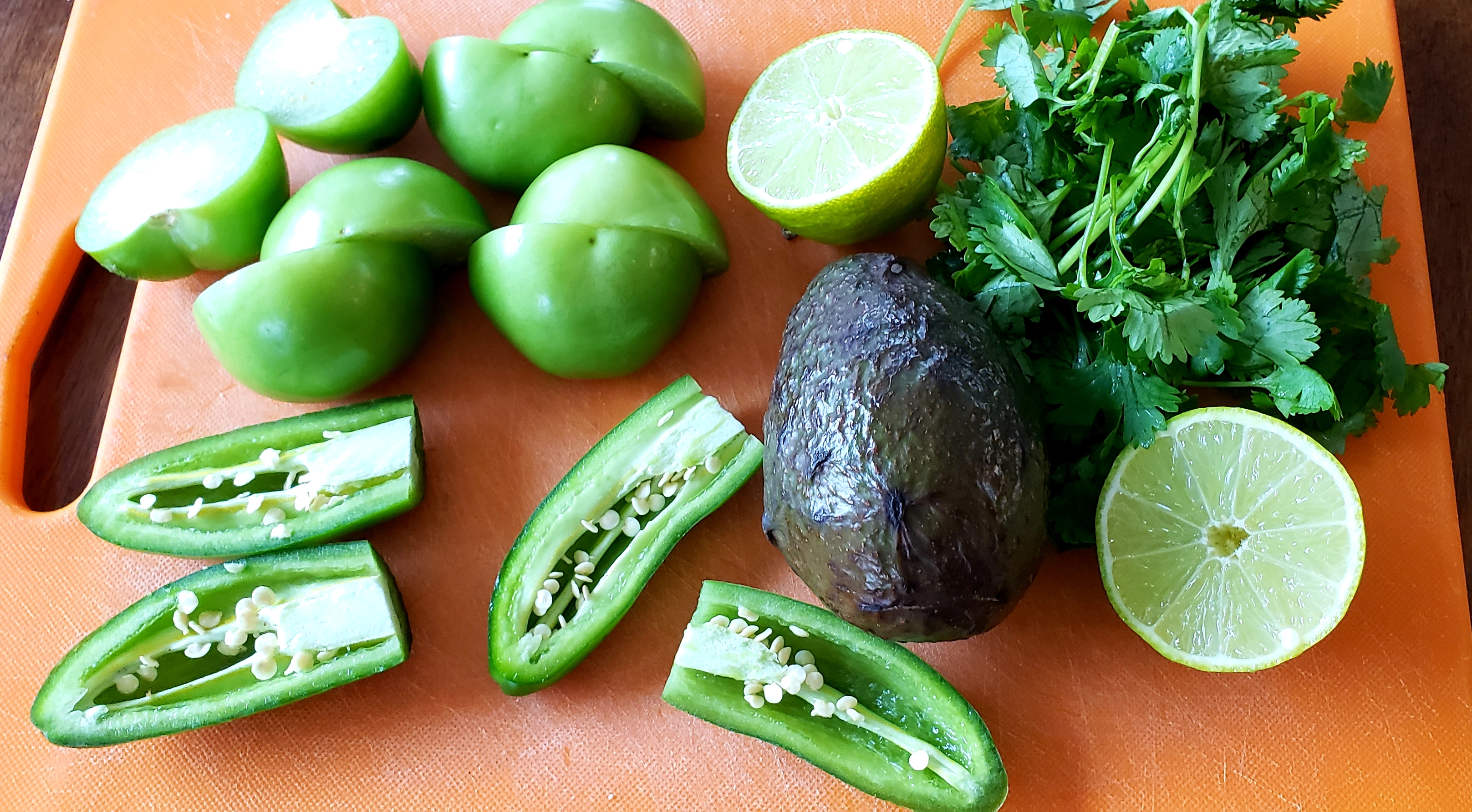 First of all, half of the tomatillos are roasted 'til the skins get wonderfully charred, the rest of the tomatillos are added, fresh, just as they are. This sublime combo gives you an unbridled depth of flavour, from the char, that is in potently in cahoots with a fruitiness from the addition of the fresh tomatillos.